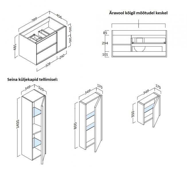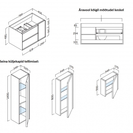 Sarjal lisaks võimalik tellida erinevaid kapi mõõte, 4 erinevat viimistlust, kõrge seinakapp, peeglid. KATALOOG